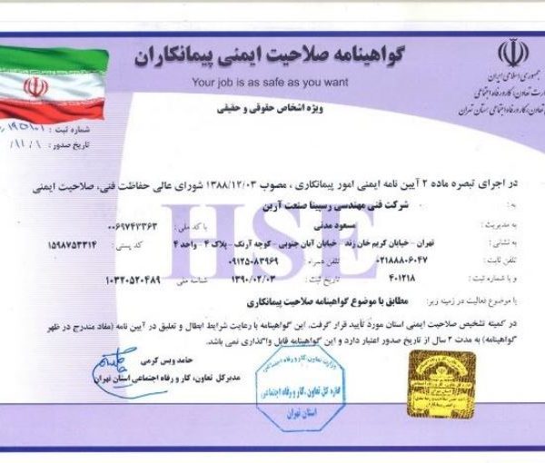 گواهینامه صلاحیت ایمنی پیمانکاران